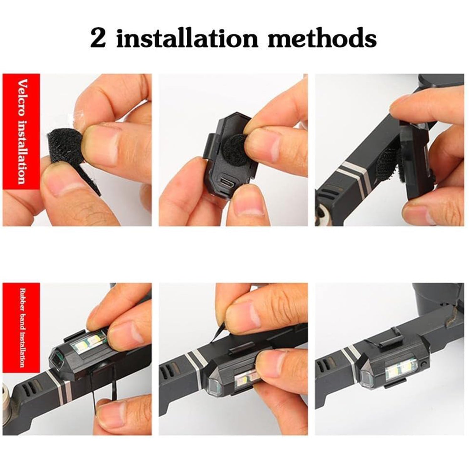 "Nice bright strobe lights with a solid waterproof build. I’ve used them on my drone, and they enhance visibility greatly. The RGB colors are vibrant and fun. USB recharge works fine, but the battery drains faster when using multiple colors. Still, a great buy for safety and style."